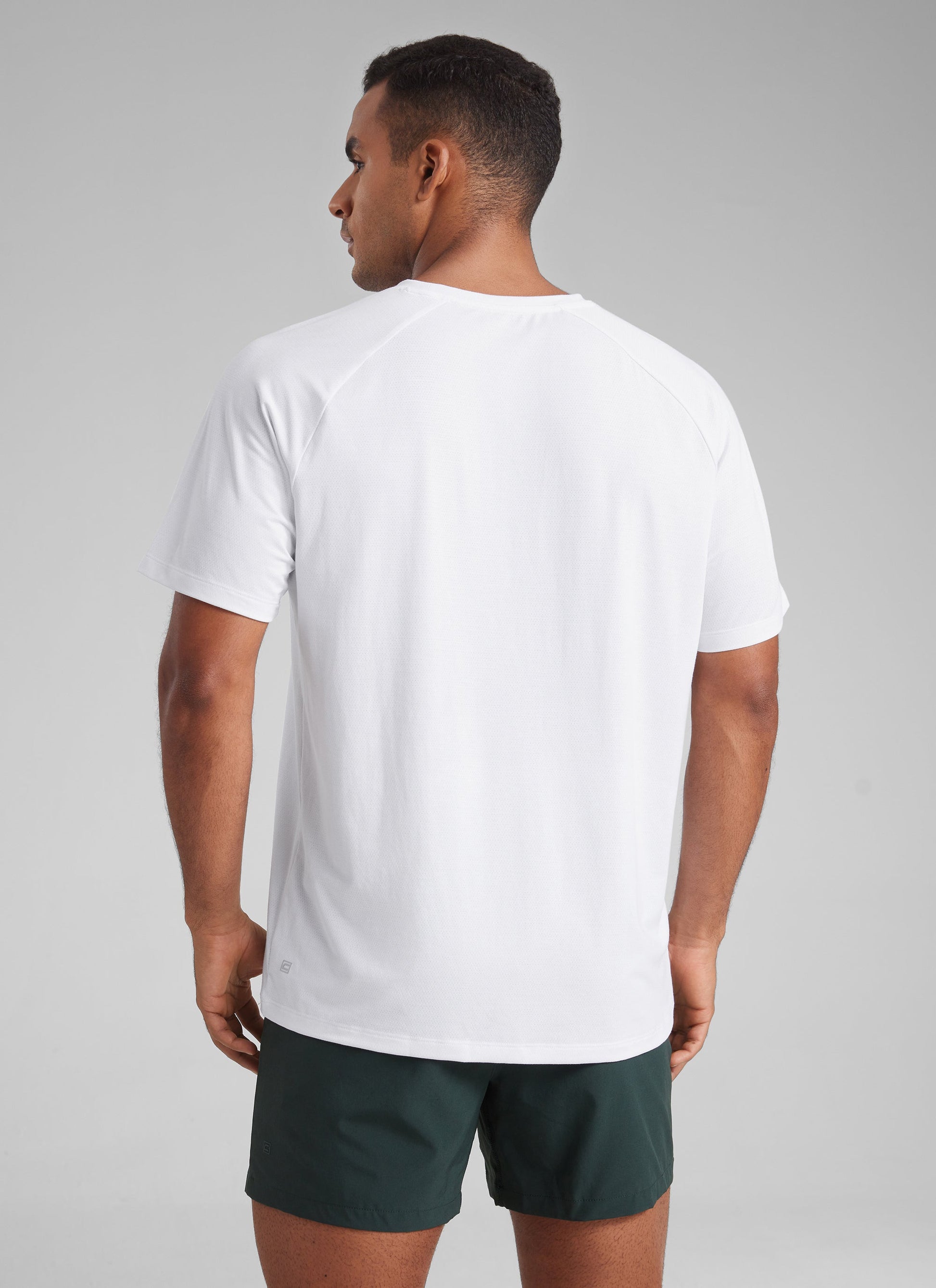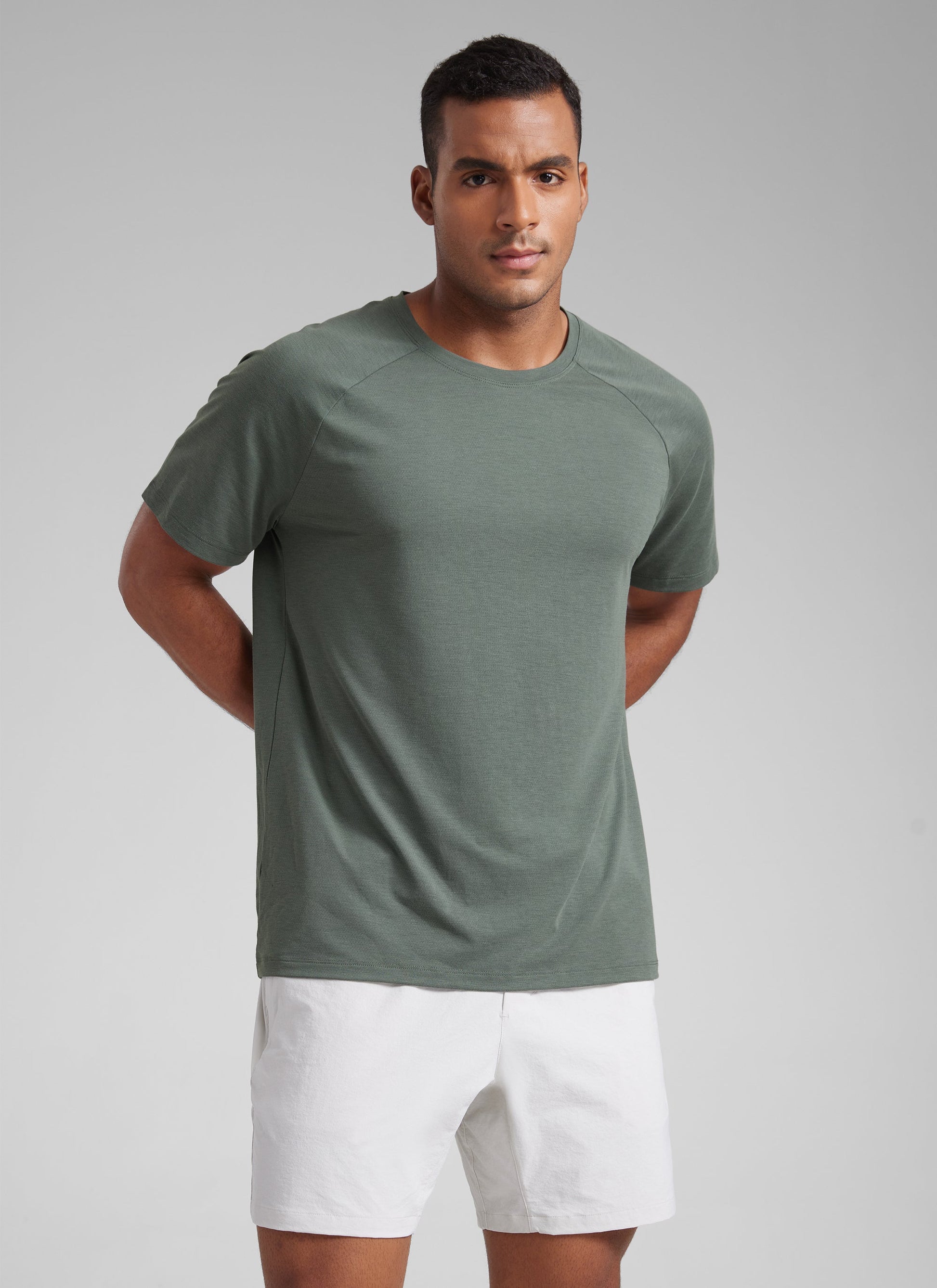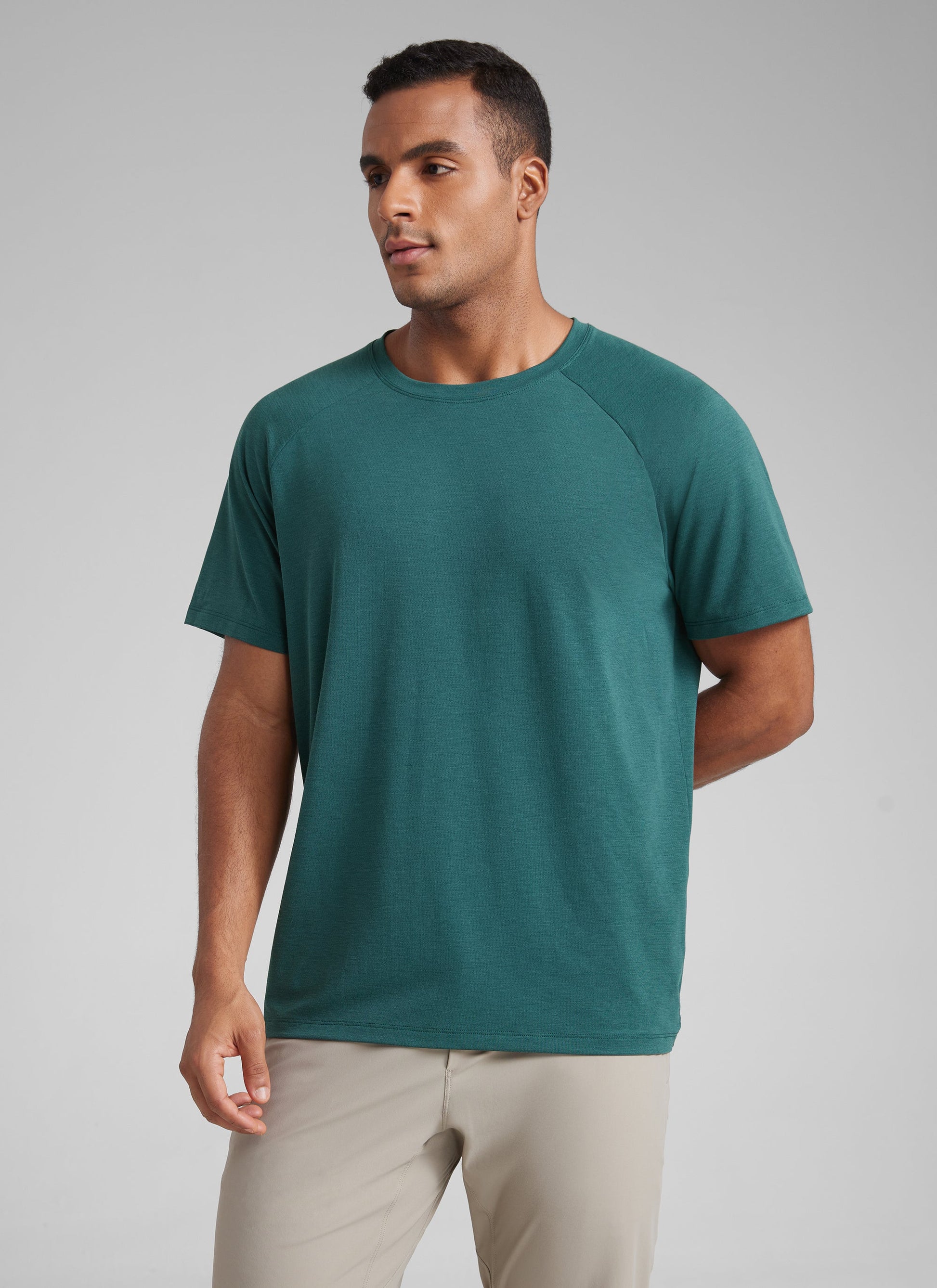 Stretch breeze mesh fabric features ultra-breathable, sweat-wicking and quick dry. This basic short sleeve shirts with crew neck and raglan sleeves design for athletic, workout, gym, running and daily wear.