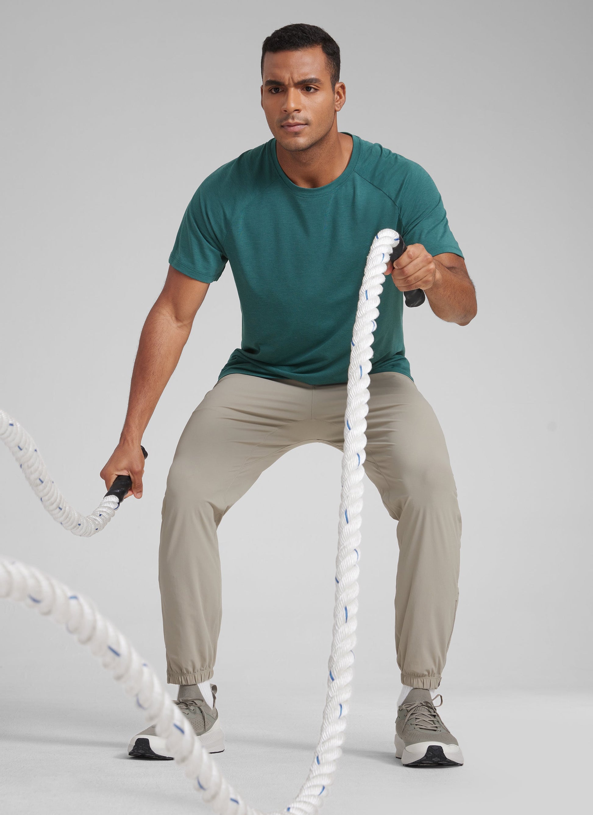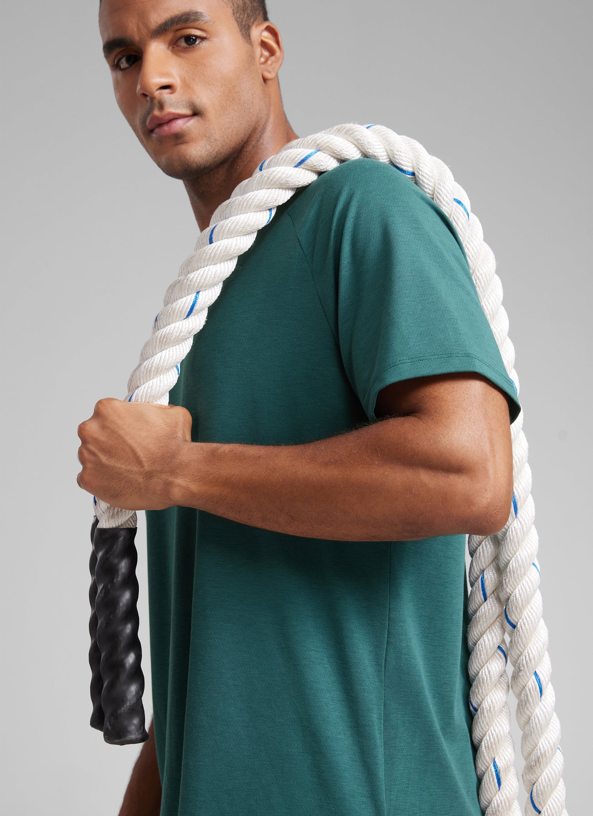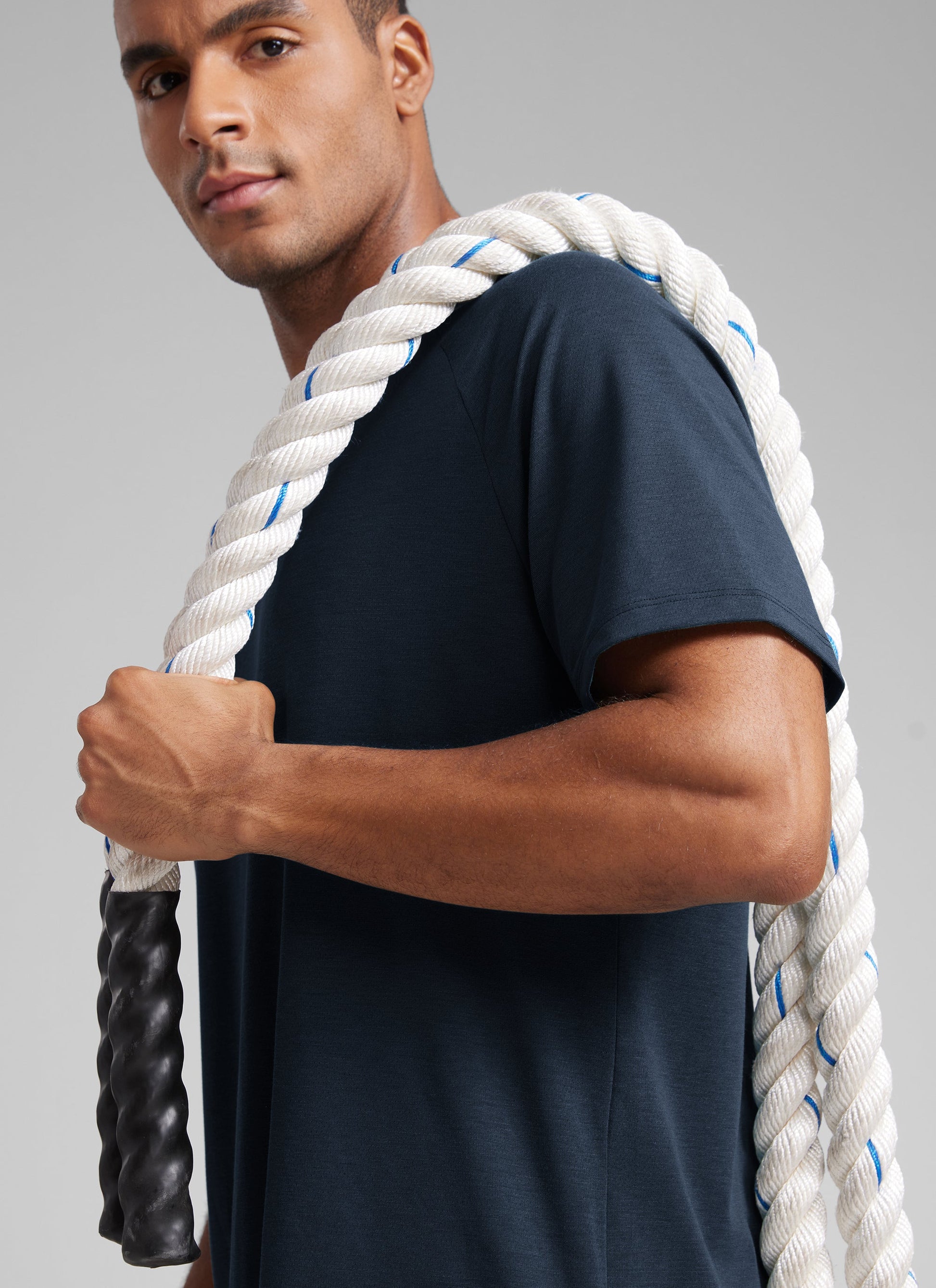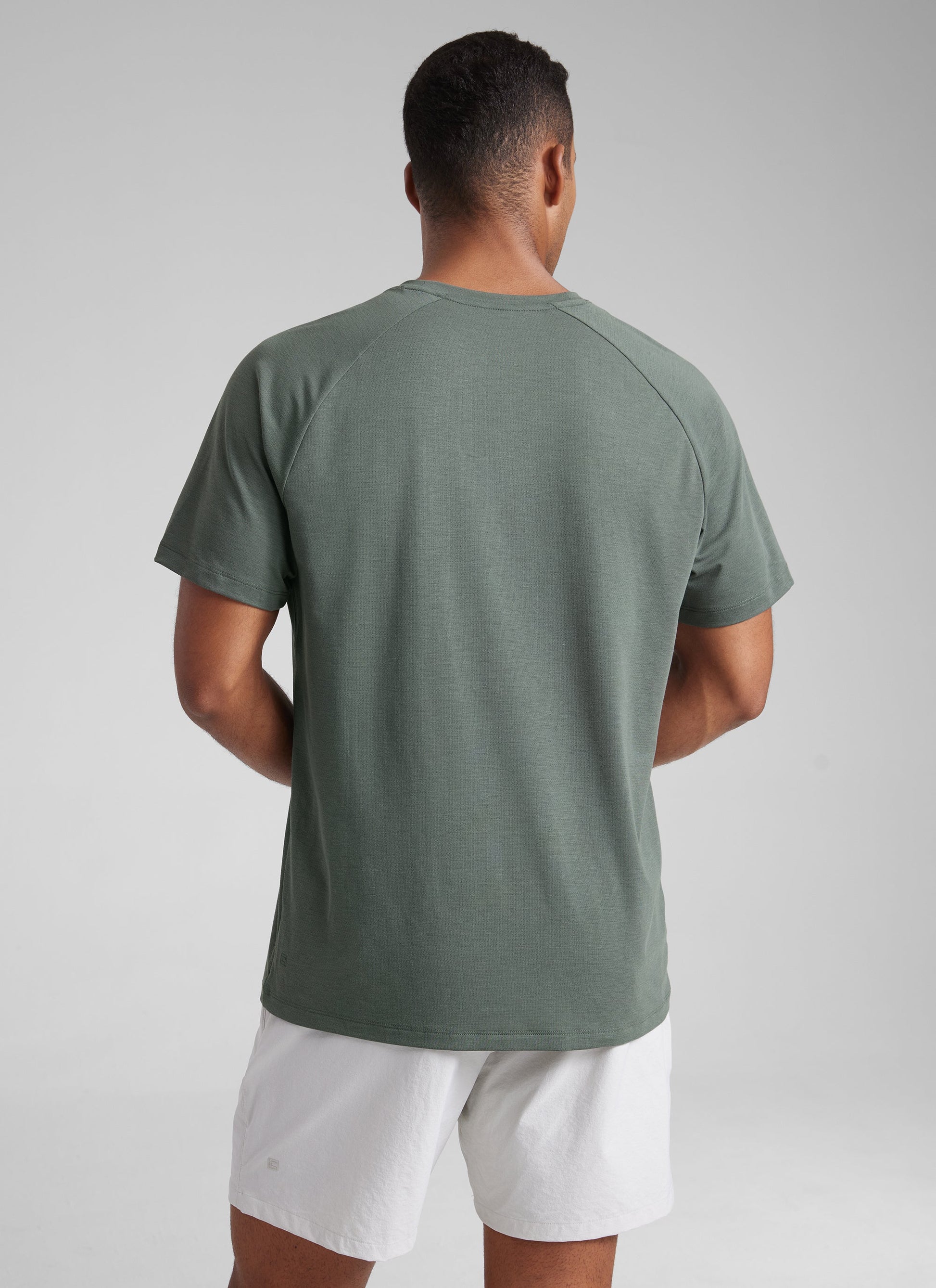 Stretch breeze mesh fabric features ultra-breathable, sweat-wicking and quick dry. This basic short sleeve shirts with crew neck and raglan sleeves design for athletic, workout, gym, running and daily wear.